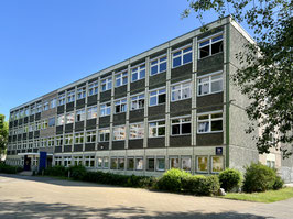 In Haus B steht uns die untere Etage mit zwei Physik-, einem Chemie- und einem weiteren Fachraum zur Verfügung. In der 1. Etage befinden sich unsere Fachräume für den Musikunterricht und Räume für die Sozialarbeiter*innen und die ProRespect Coachinnen. Die 2. Etage des Gebäudes gehört der Schostakowitsch-Musikschule.