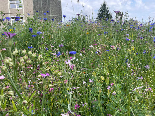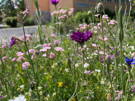 In mühsamer Handarbeit haben Schüler*innen aus ETEP- und WAT-Kursen Wurzeln ausgegraben, Erde verteilt, Reifen gestaltet, Pflanzen gesetzt. Es sieht noch nicht nach viel aus, aber es wird! Und es wird toll.